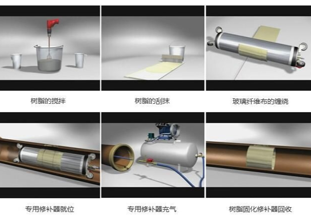 2、施工時間短,由于修復材料固化時間短,從樹脂混合到完成局部內襯修復僅需數十分鐘,可在很短的時間內完成工作;